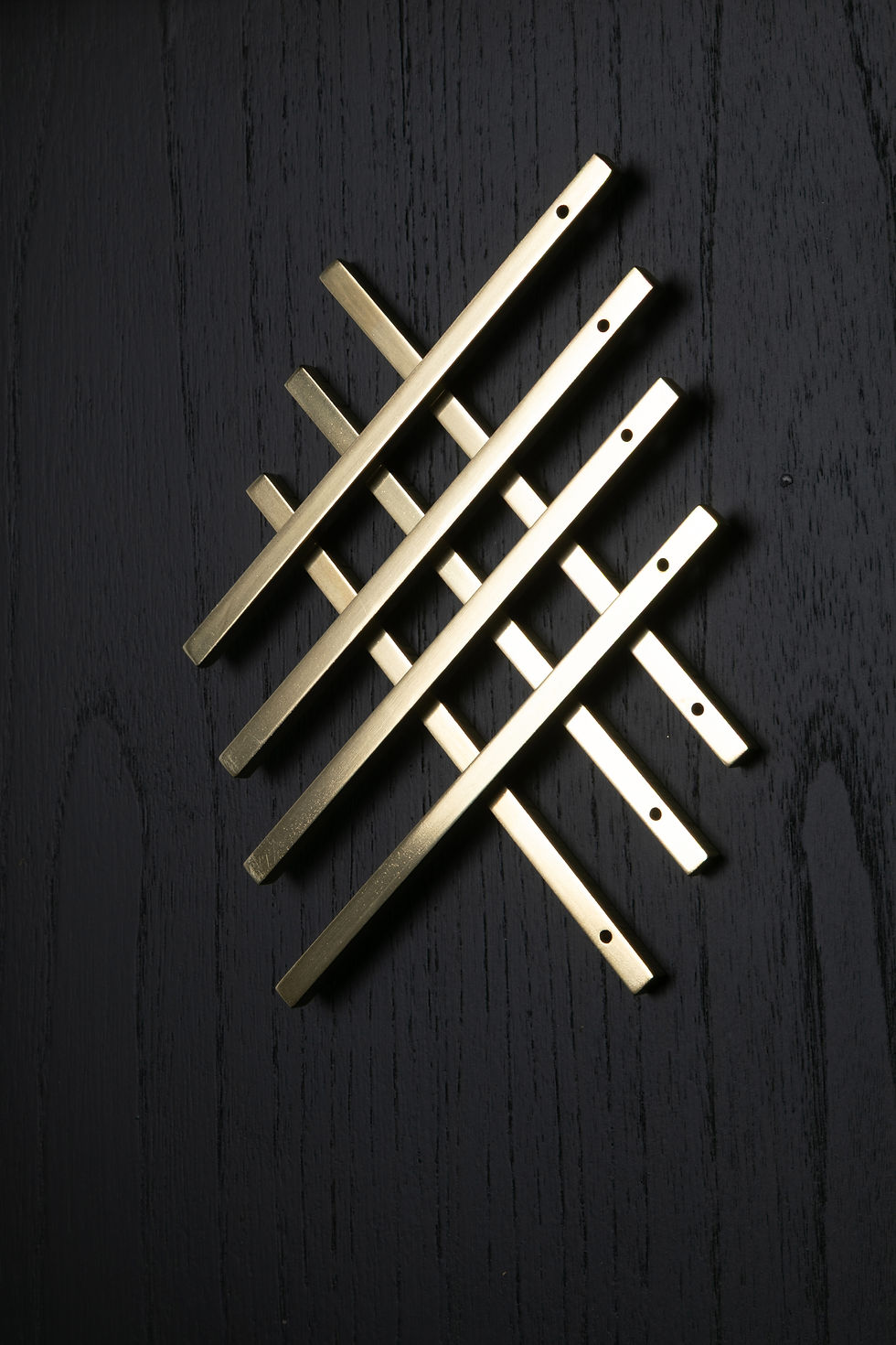 Obeliscos de madera maciza, trabajados a mano. Terminados en hidrolaca transparente al agua. Cada pieza es única.